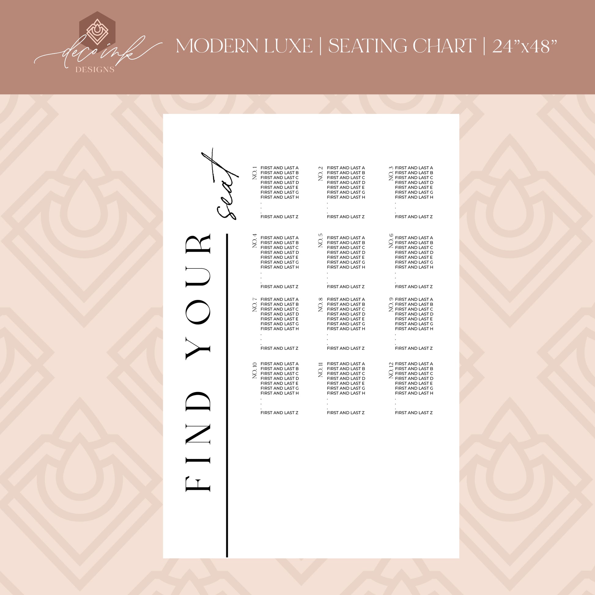 Lead Time: Since this does include a seating chart, we require an excel sheet of your guests names no later than 3 weeks from your wedding day so we can execute the job and maintain our high standards! If we do not have the excel sheet of your guest names 3 weeks before the wedding, you forfeit the seating chart and a refund will not be allowed. We need at least three weeks to input all the names, get the signs in production and then inspection and then off to the packaging department. I hope you understand how much we truly enjoy delivering high quality signs for your big day. Rushing through production is not only stressful for takes away from other clients.
