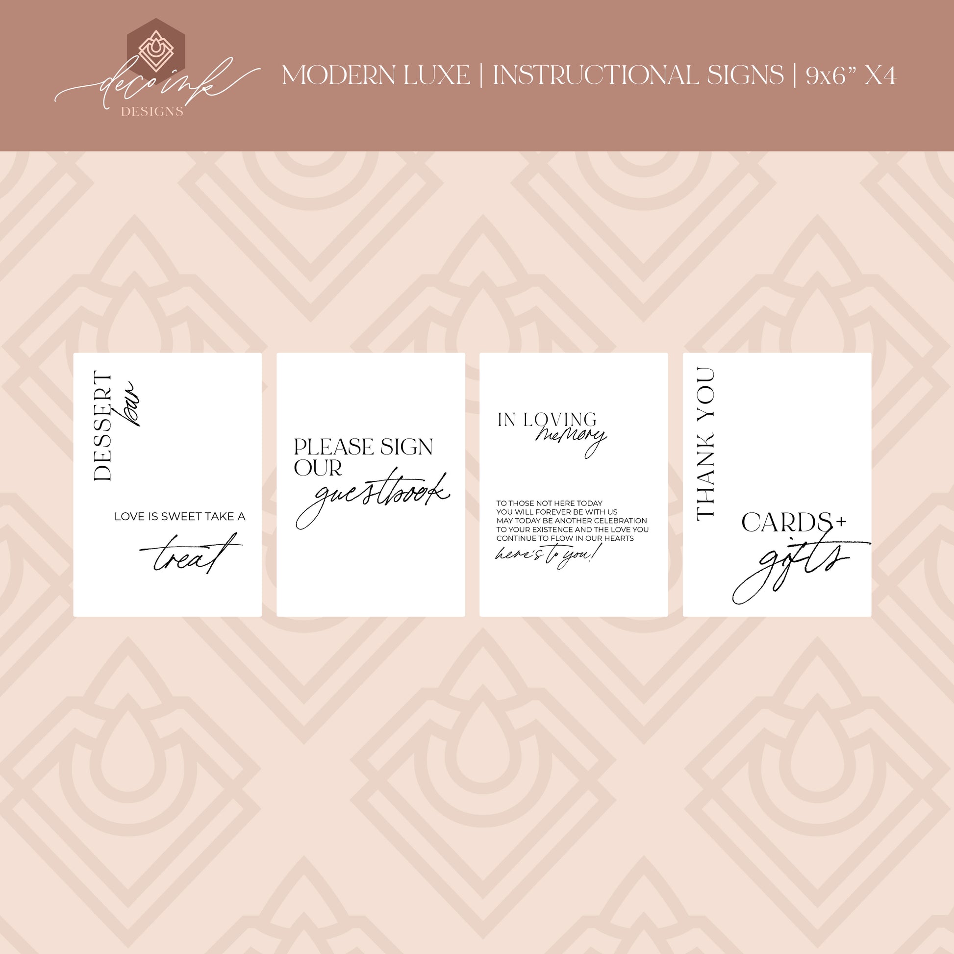 These elegant UV printed acrylic signs provide elegance and cohesiveness. They are all 1/8" thick acrylic and come ready to use!