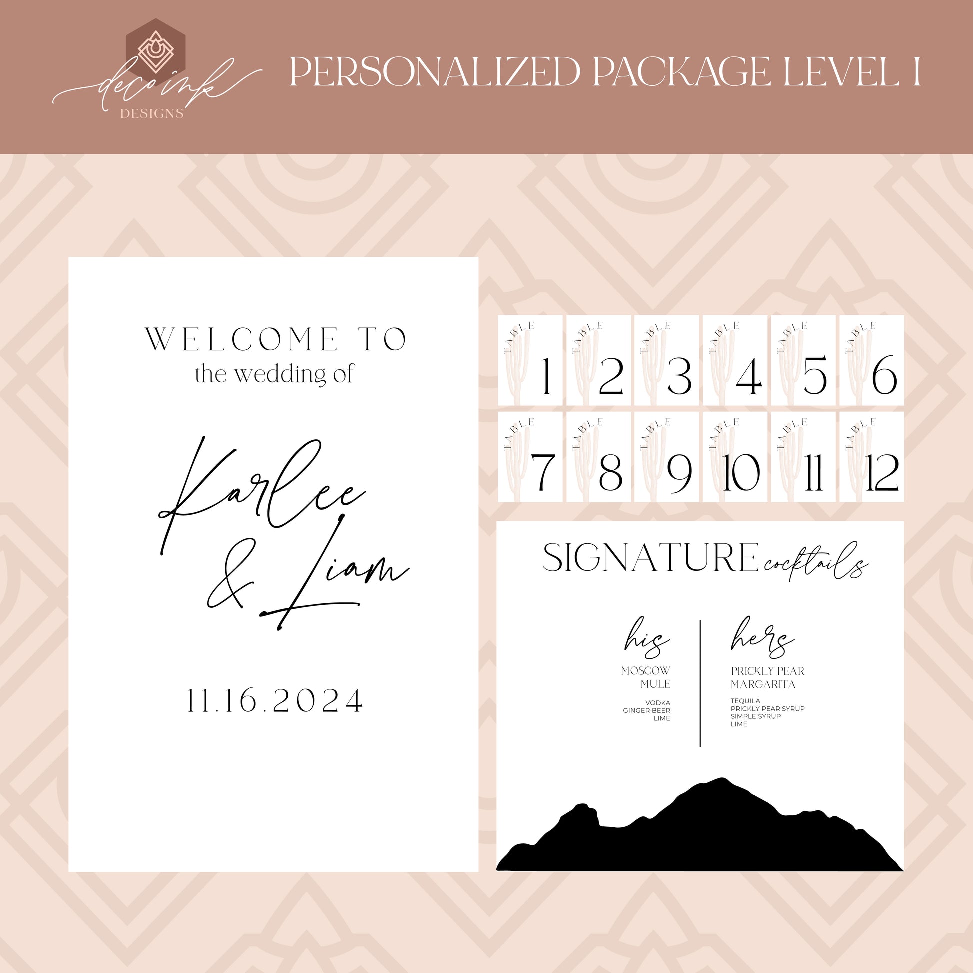 Design: What you see if what you get! Of course, we will add your details and gather all the information we need to swap out but as far as fonts go and placement of lettering, it all stays. In order to keep the cost where it is, we can delete a design element you do not like but we cannot add anything to these pre-designed packages.